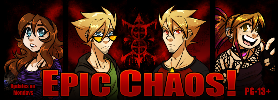 Epic Chaos! is a free-to-read webcomic about a group of college students coming face to face with a demonic-looking doppelganger sent to murder them and spread havoc wherever possible.